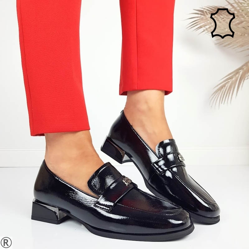 Черни лачени лоуфъри от естествена кожа- Sidni Black 11091