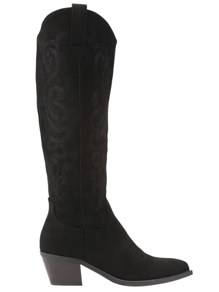 Черни каубойски ботуши от велур- Amanda Black 11181