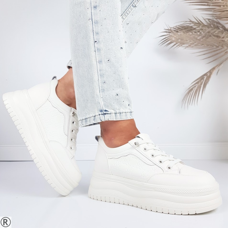 Бежови кецове от естествена кожа - Klaudia White 11197