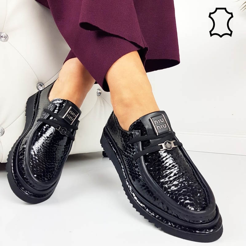 Начало НОВА КОЛЕКЦИЯ ЕЖЕДНЕВНИ ОБУВКИ Черни обувки от естествена кожа с връзки - Amanda Black 11262