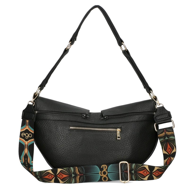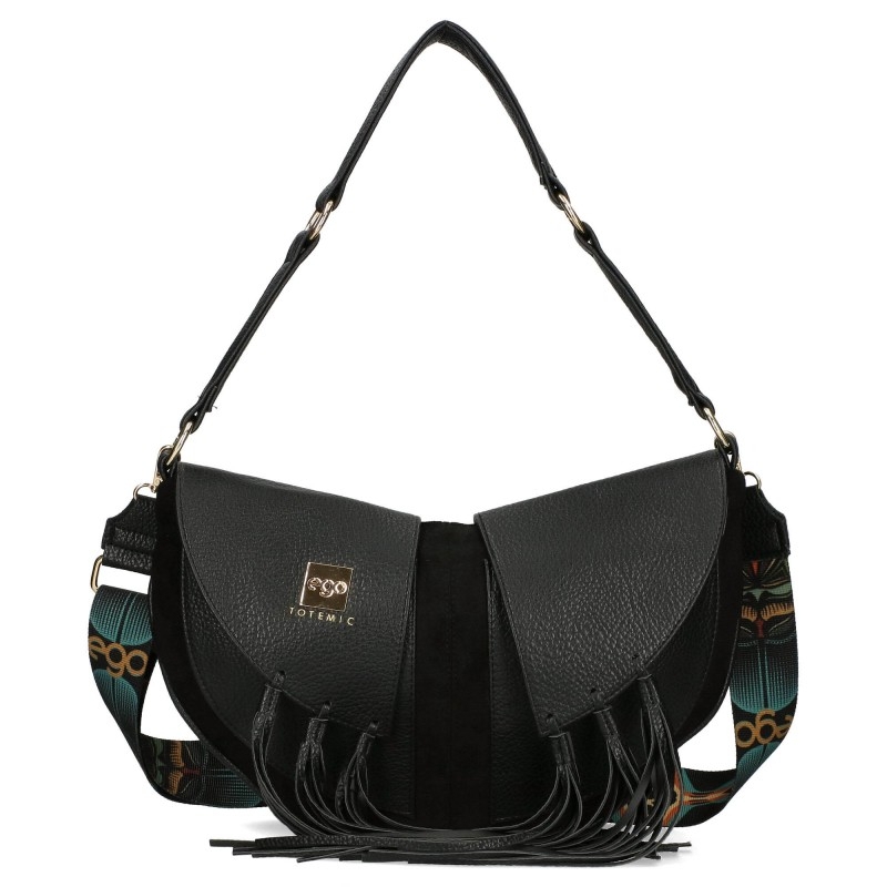 Черна велурена чанта с кожени ресни- EGO Totemic Black 11298