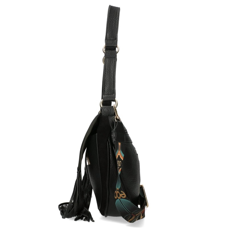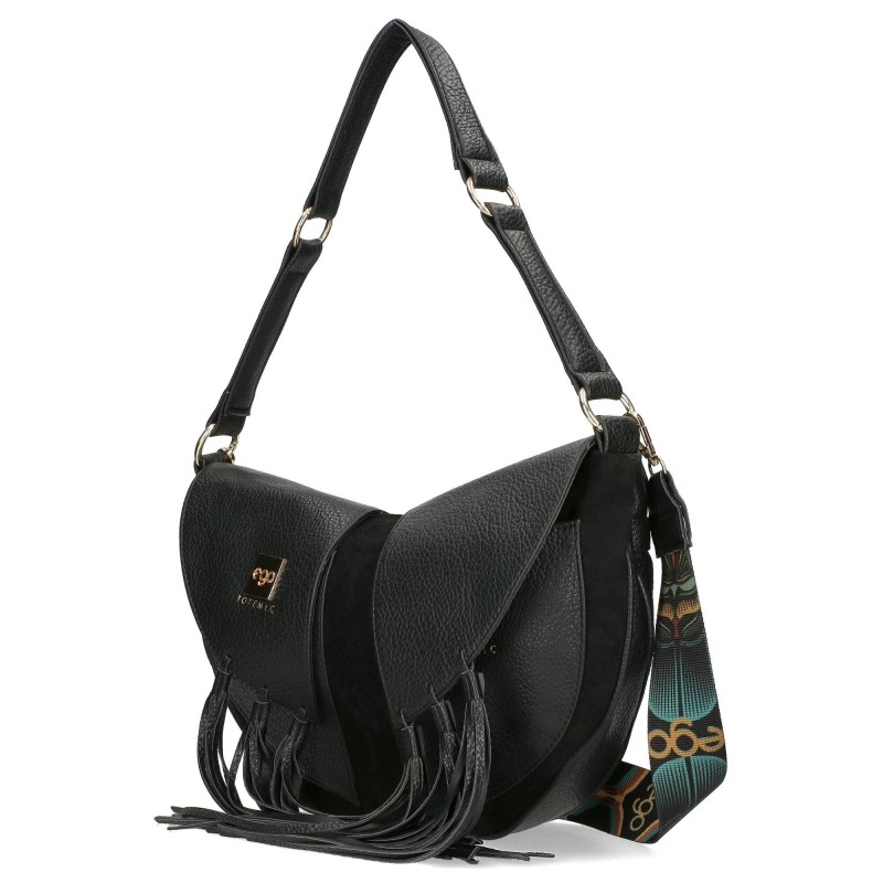 Начало ЧАНТИ И РАНИЦИ ДАМСКИ ЧАНТИ Черна велурена чанта с кожени ресни- EGO Totemic Black 11298