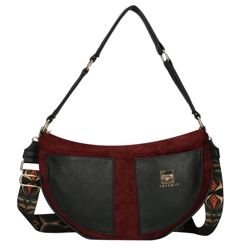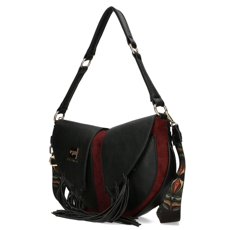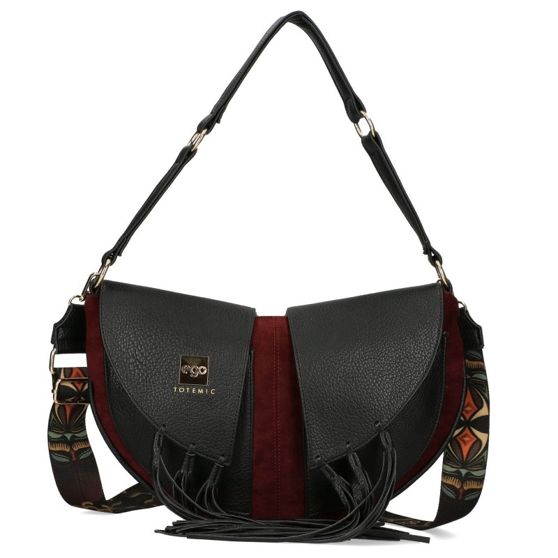 Велурена чанта в цвят бордо с кожени ресни- EGO Totemic Burgundi 11299