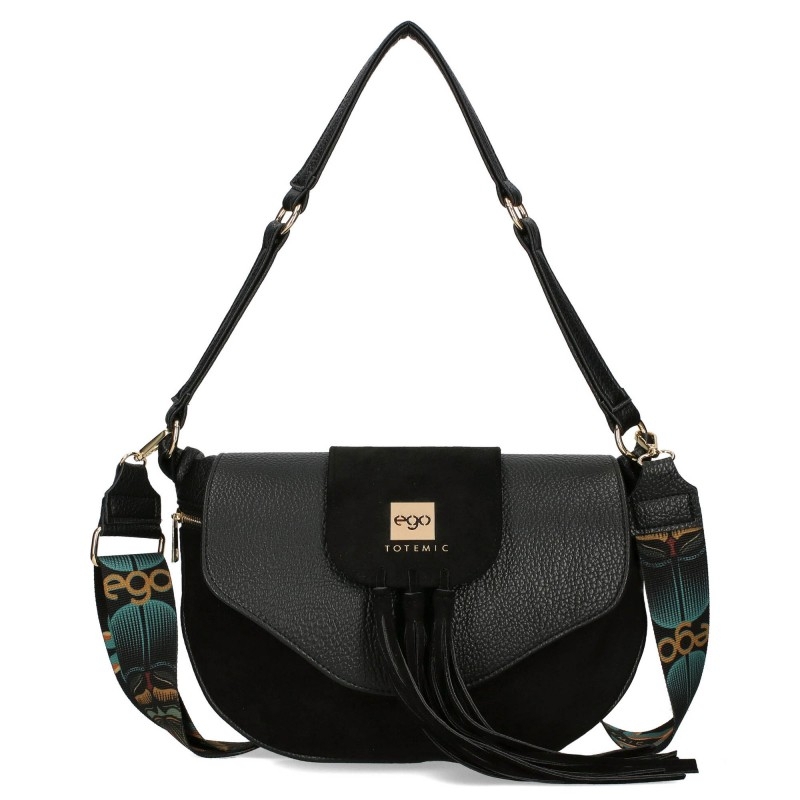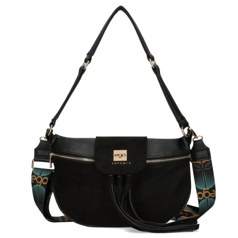 Начало ЧАНТИ И РАНИЦИ ДАМСКИ ЧАНТИ Черна велурена чнта с два сменяеми капака- EGO Totemic 11300