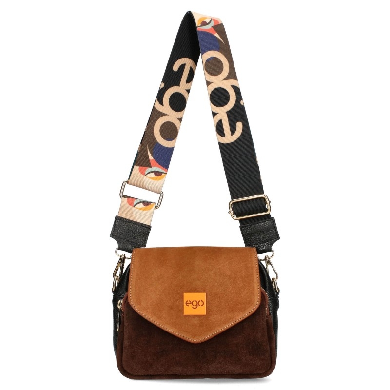 Чанта от естествена кожа и велур с два капака- EGO 11325