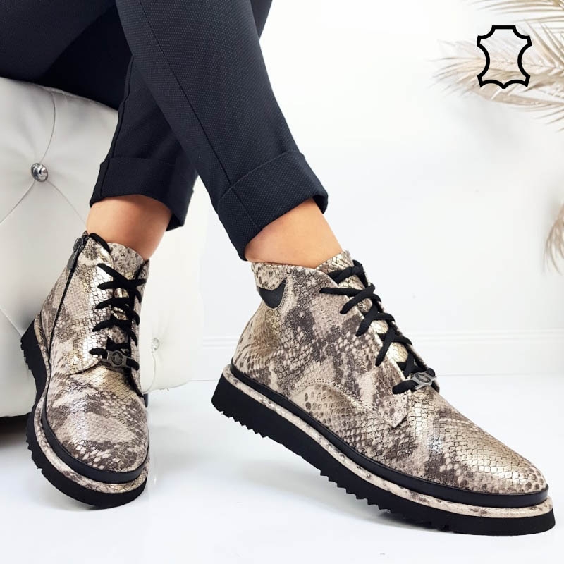 Начало НОВА КОЛЕКЦИЯ ДАМСКИ БОТИ Ежедневни боти Равни боти от естествена кожа със змийски принт- Glami 11329