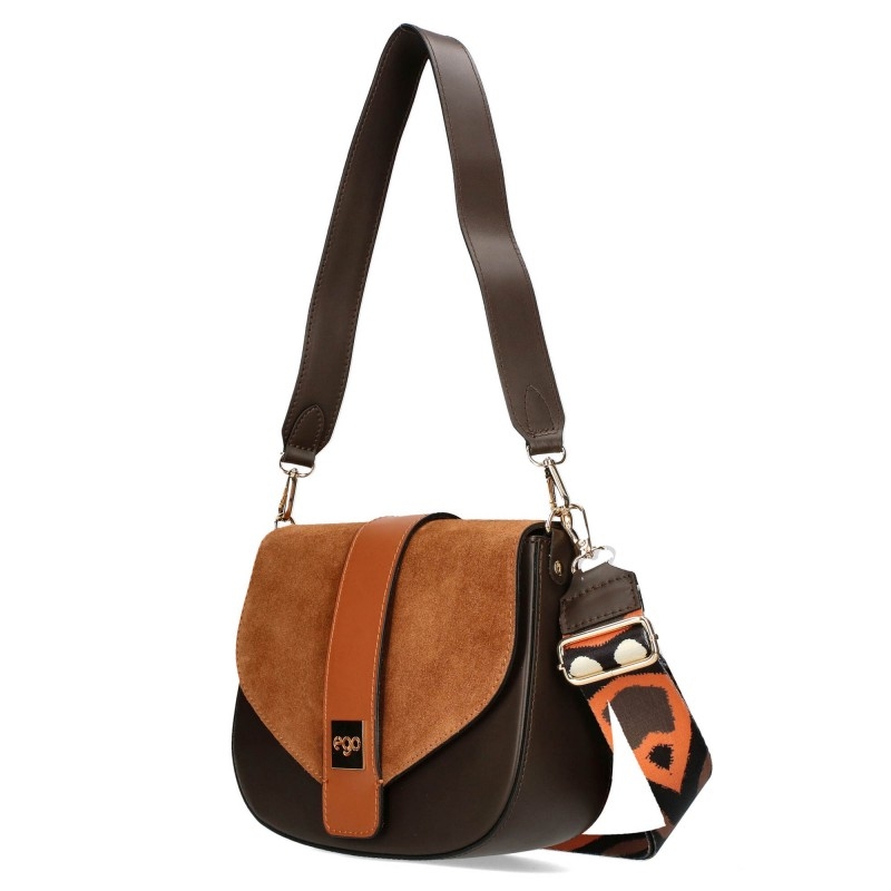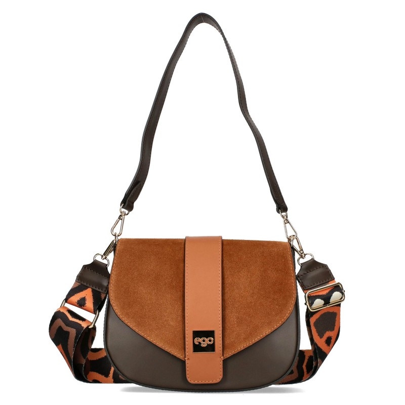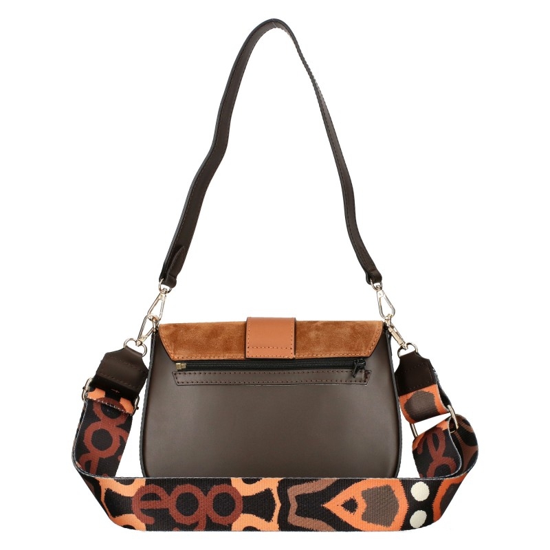 Чанта от естествена кожа в сив и керемиден цвят- EGO 11345