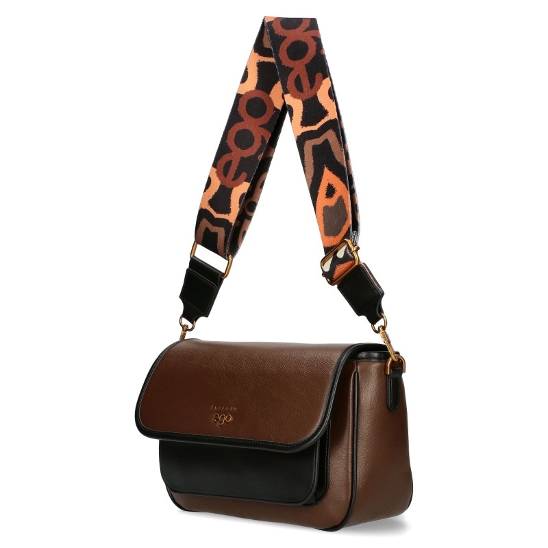 Кафява дамска чанта с капак и дълга дръжка- EGO 11350