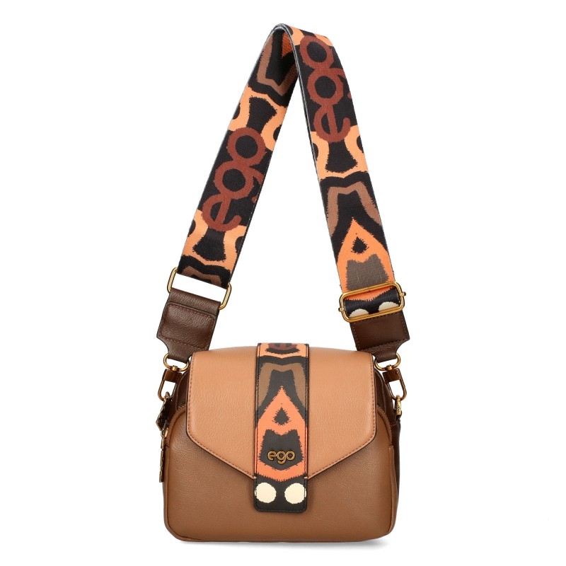 Кафява чанта с два сменяеми капака и дълга дръжка- EGO 11383