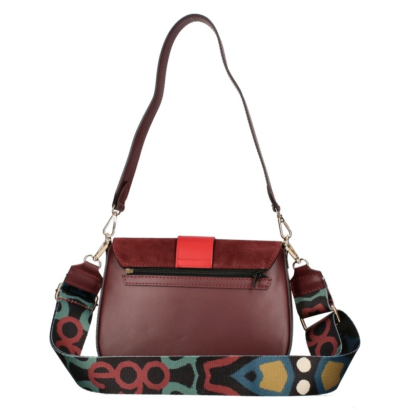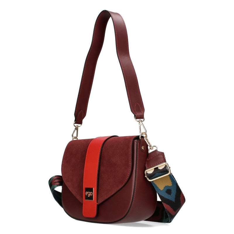 Чанта от естествена кожа и велур в цвят бордо- EGO 11385