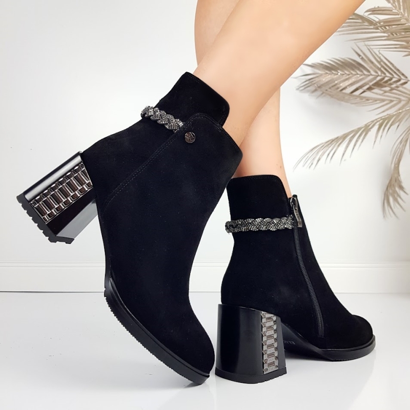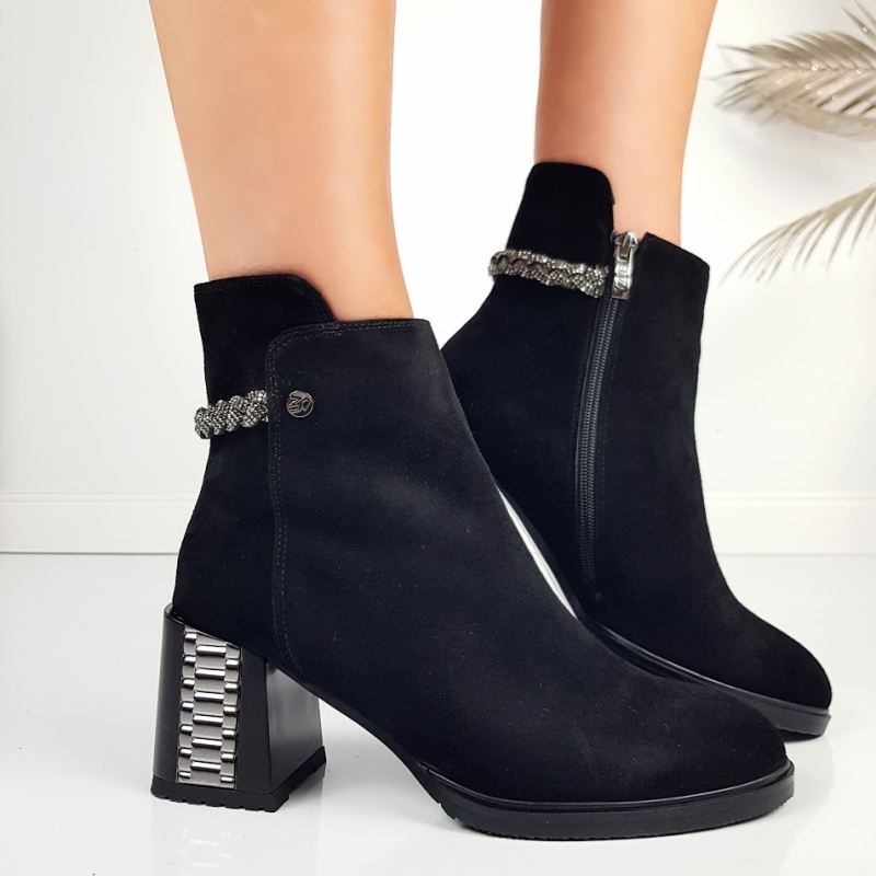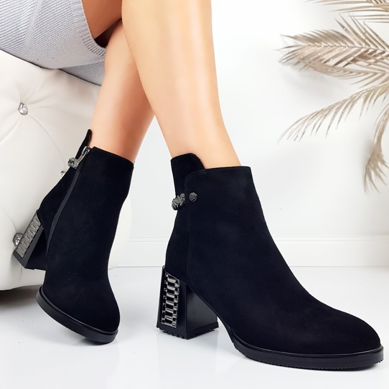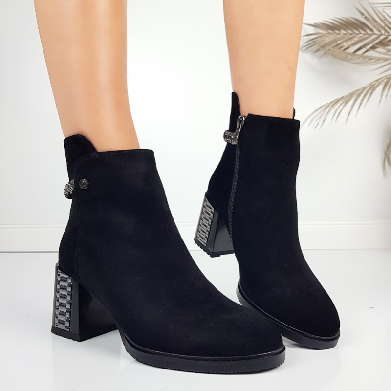 Черни боти от естествен велур на широк ток- Eliza Bulgaria 11398