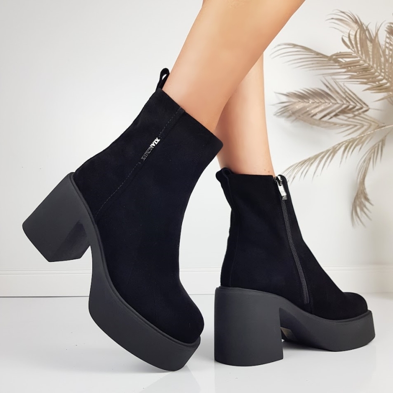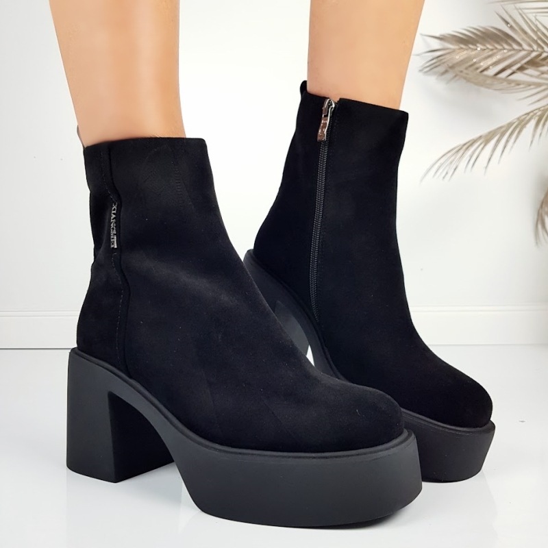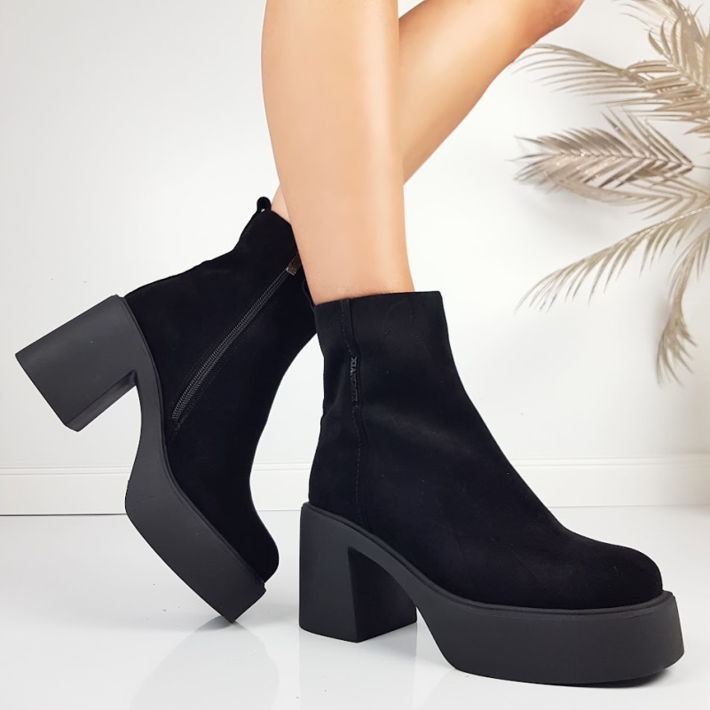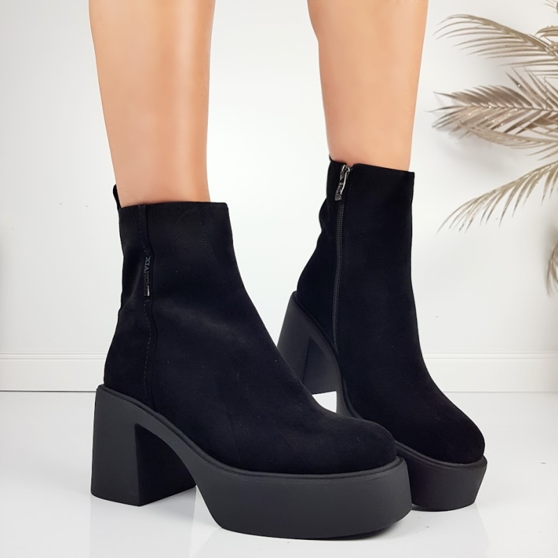 Черни боти от естествен велур на ток и платформа- Eliza Bulgaria 11399