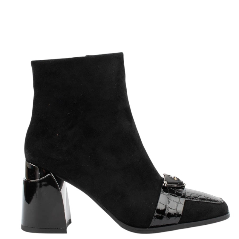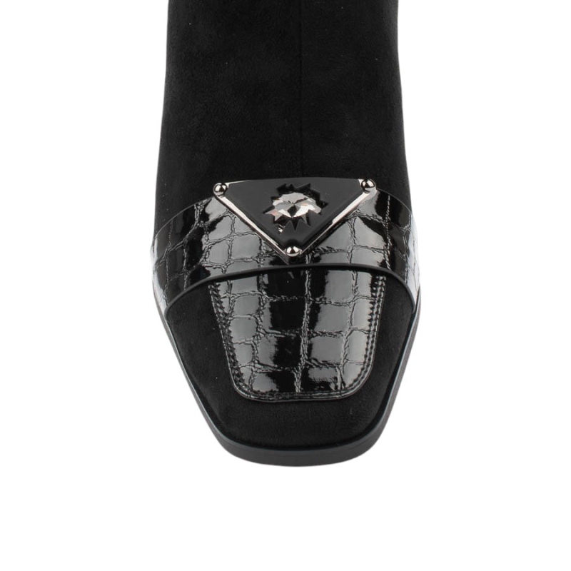 Елегантни черни боти от велур и кожа с кроко принт- Eliza Bulgaria 11420
