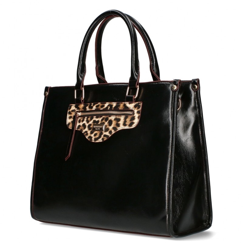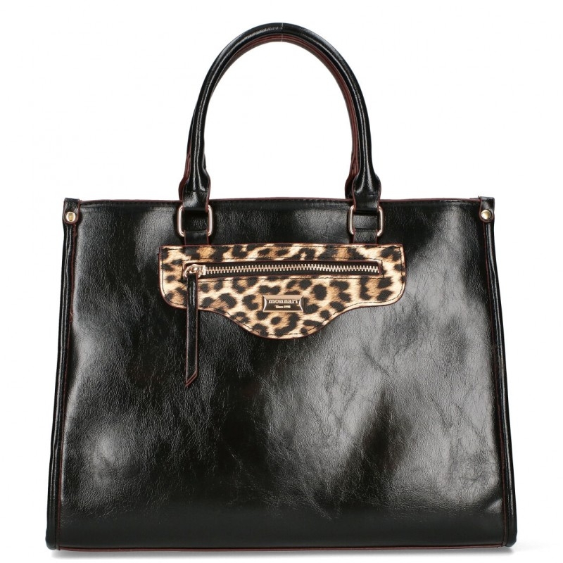 Черна чанта тип куфарче с леопардов прин- Monnari 11428