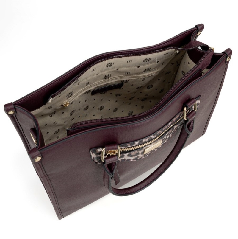Чанта тип куфарче в цвят бордо с леопардов акцент- Monnari 11429
