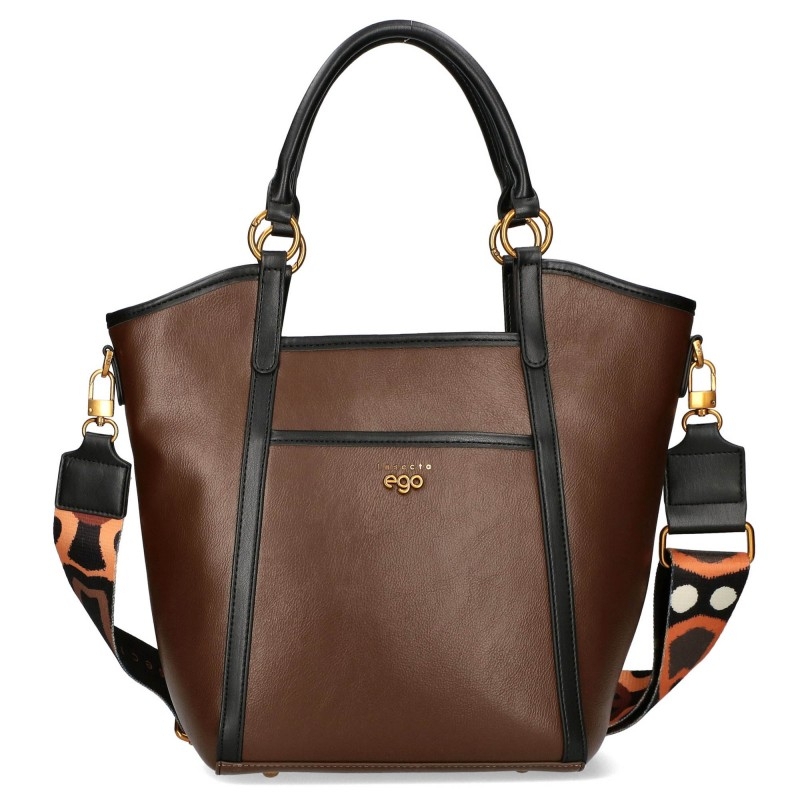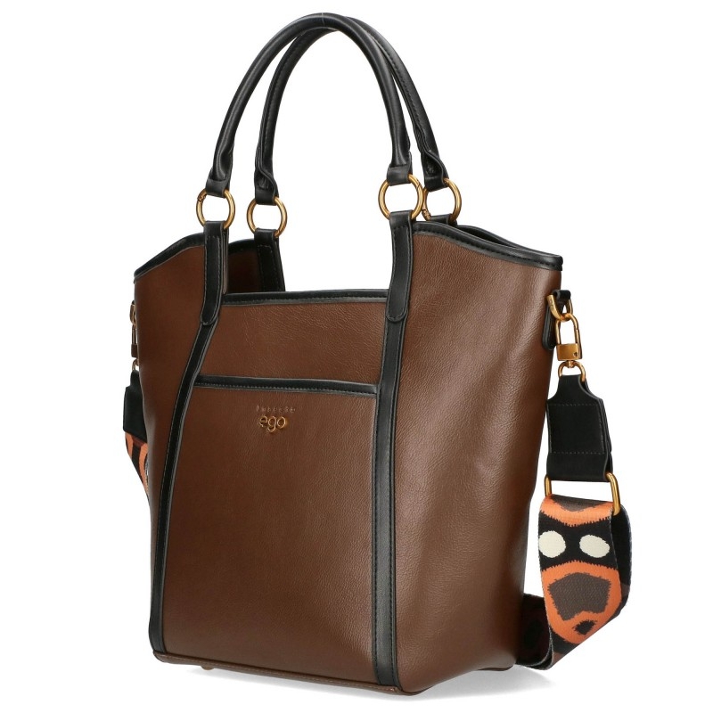 Тъмно кафява дамска чанта с дълги дръжки- EGO 11432