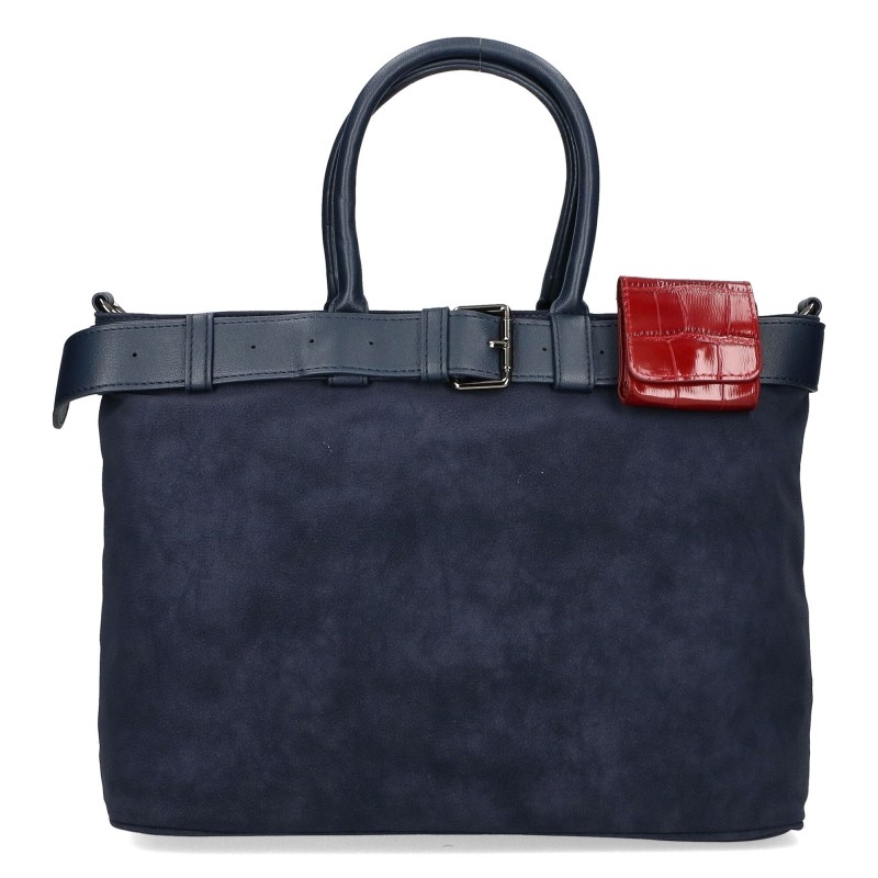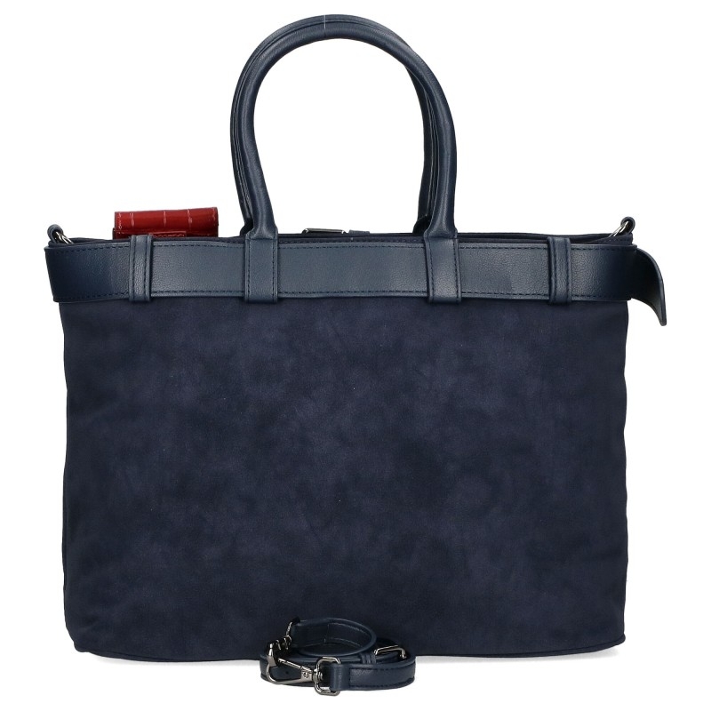 Голяма велурена тъмно синя чанта- Sandra Blue 11434