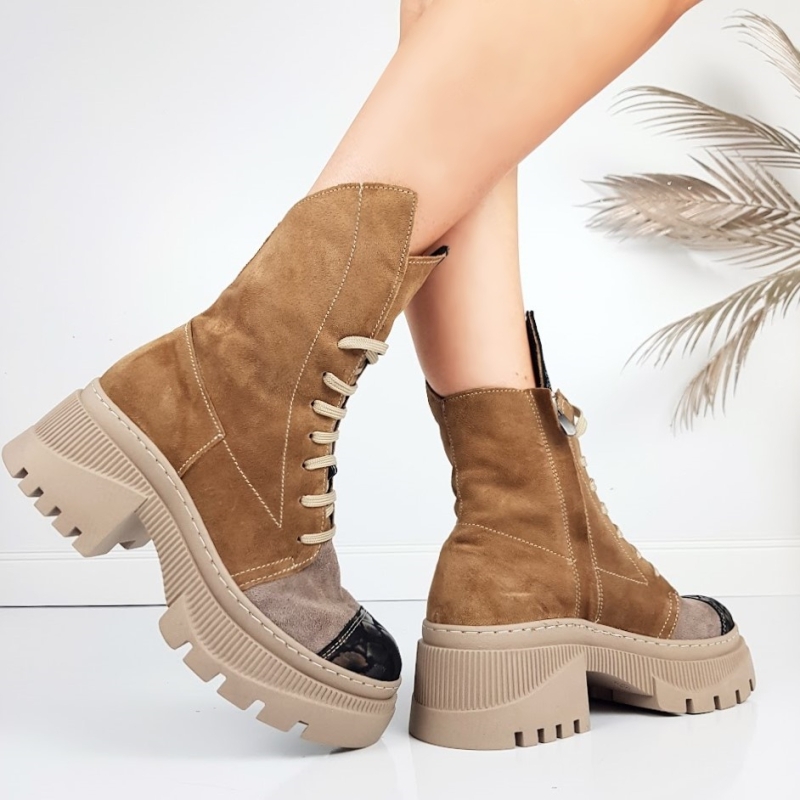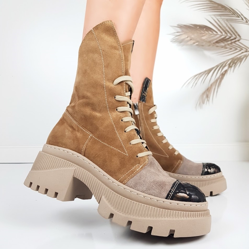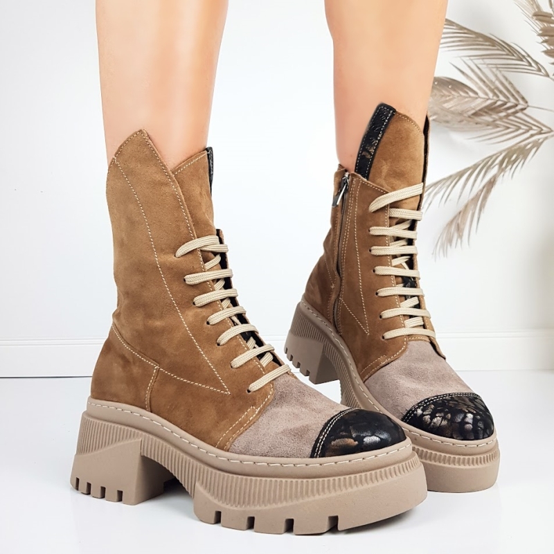 Начало НОВА КОЛЕКЦИЯ ДАМСКИ БОТИ Боти на платформа Боти от естествен велур в кафяв цвят и цвят визон- Glami 11443