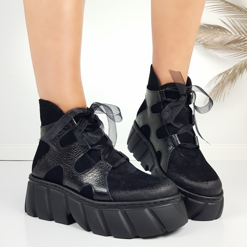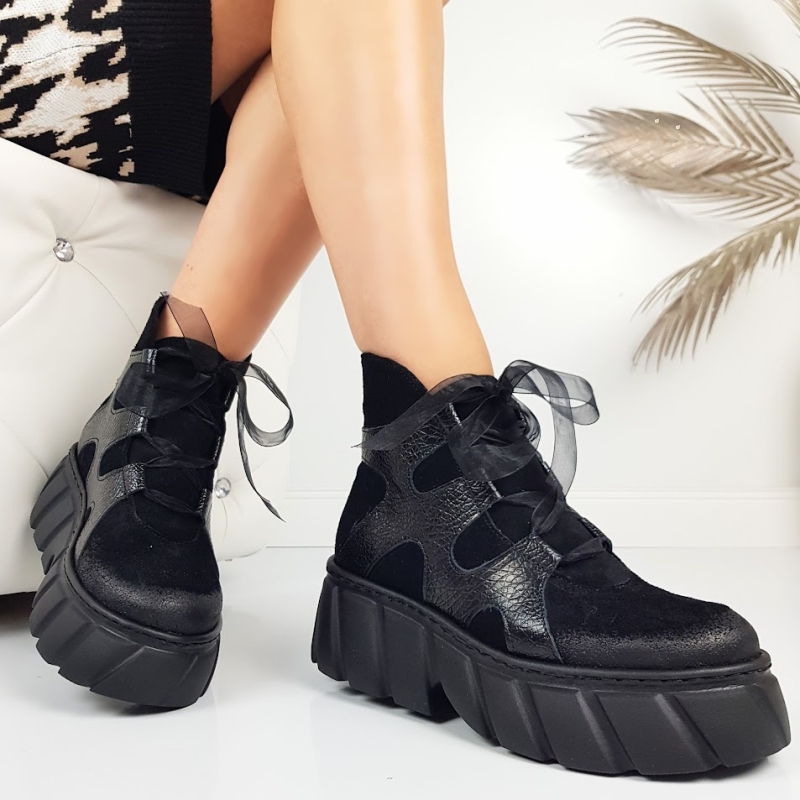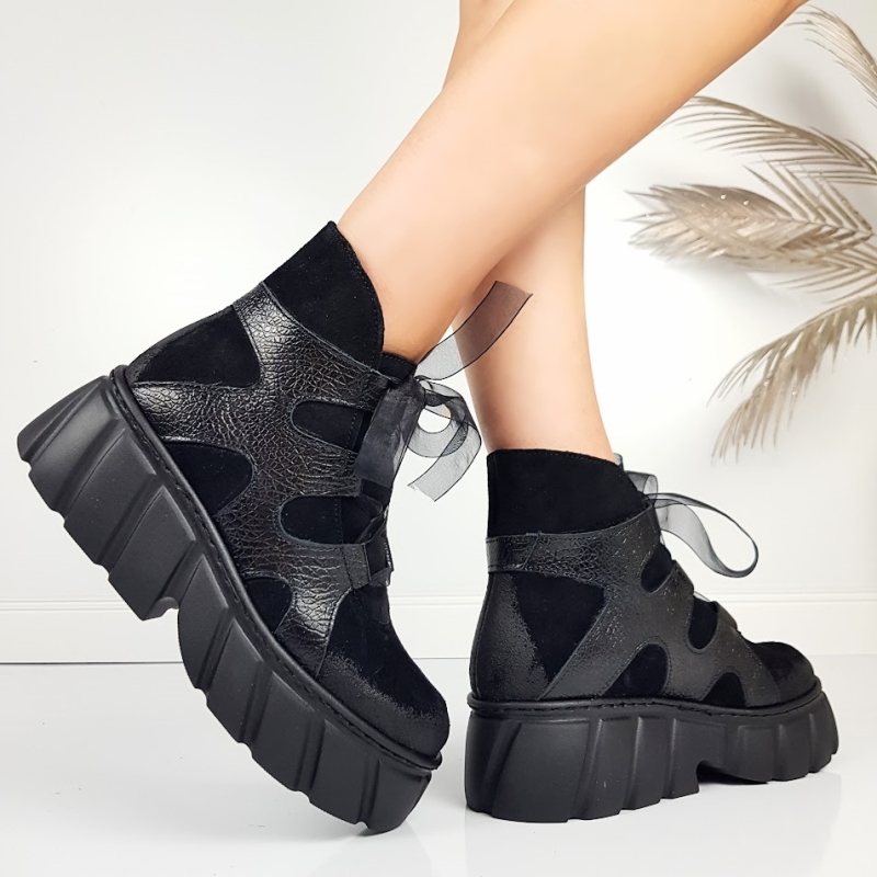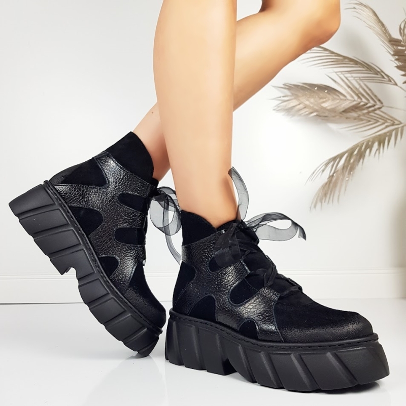 Черни боти от естествен набук на платформа- Daria Black 11445