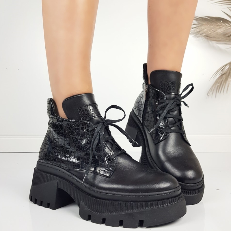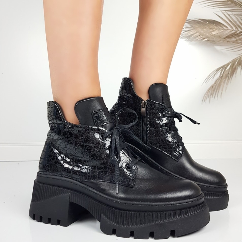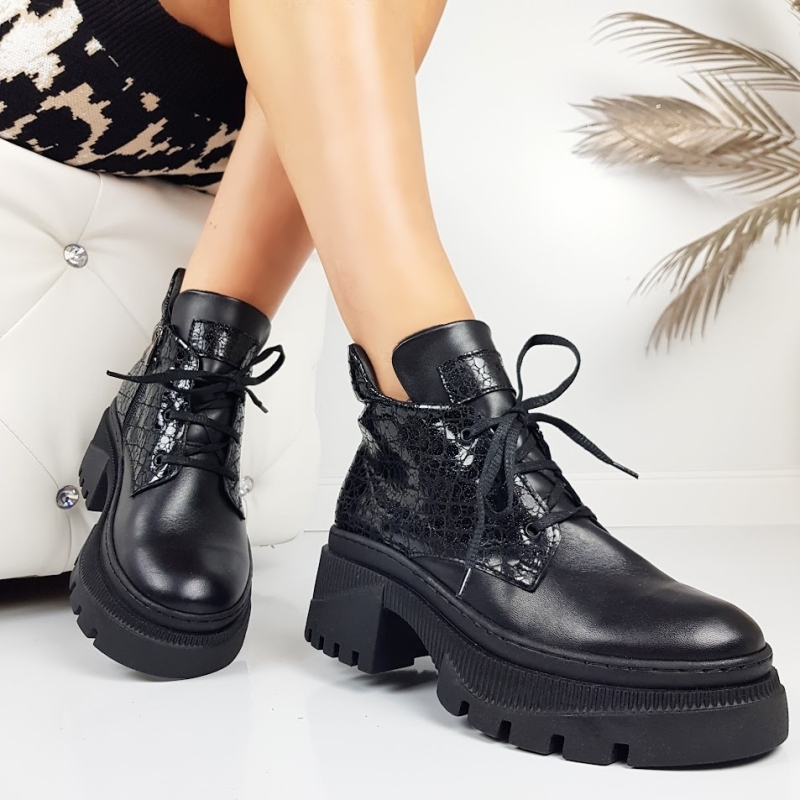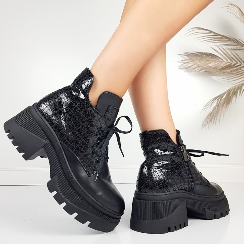 Черни боти от естествена кожа на платформа- Sandra Black 11447