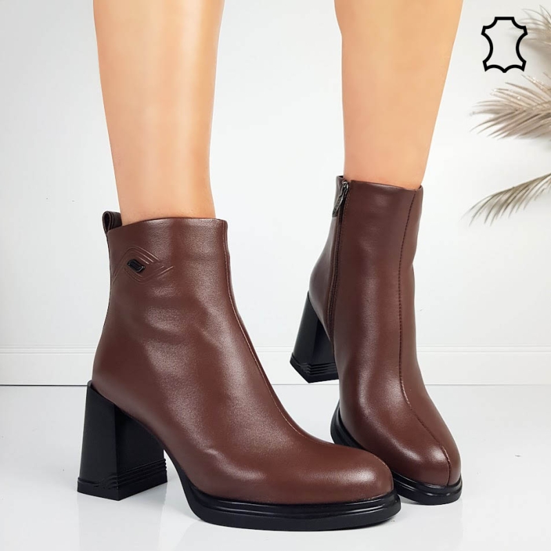 Кафяви боти от естествена кожа на удобен широк ток- Eliza Bulgaria 11472