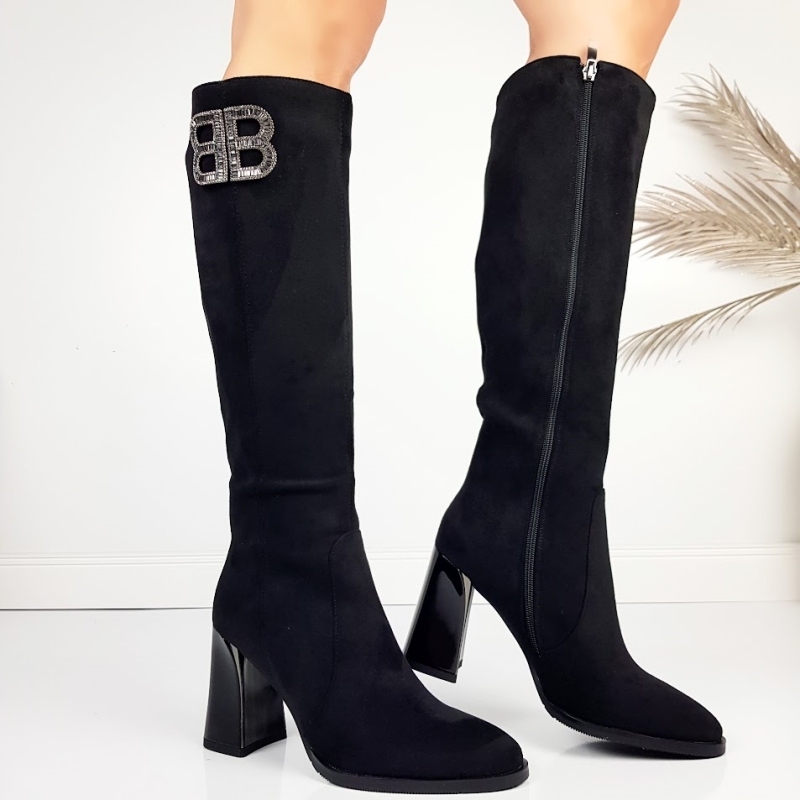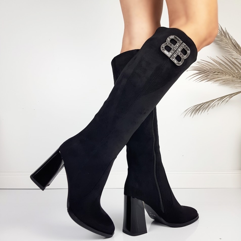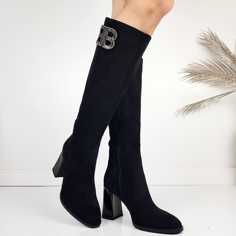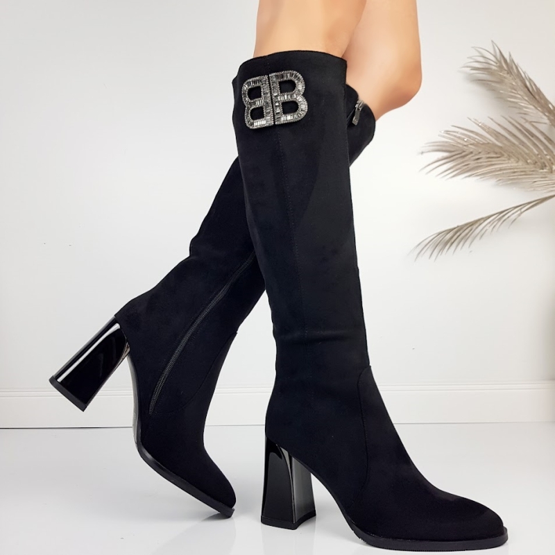 Черни елегантни ботуши от велур на широк ток- Eliza Bulgaria 11483