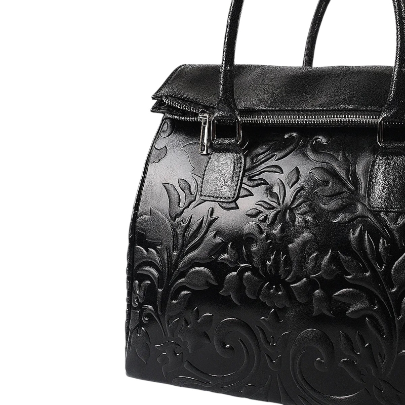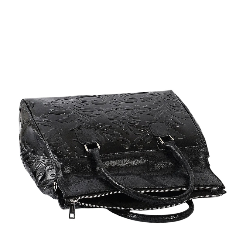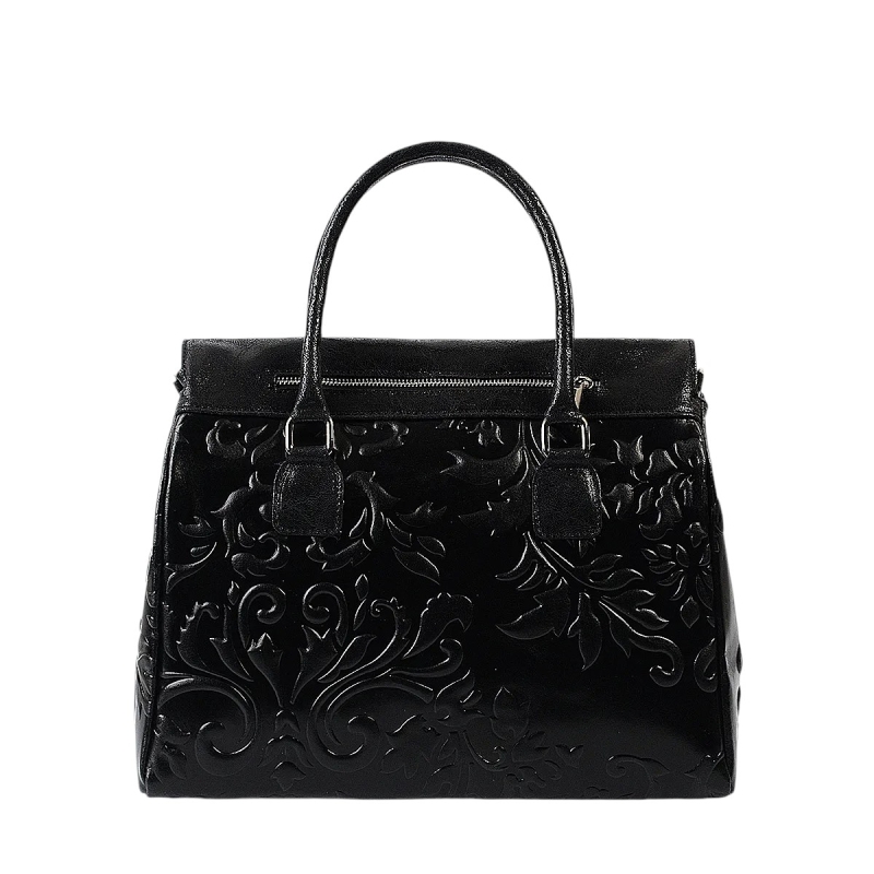 Луксозна твърда чанта от естествена кожа- Afra Black 11502