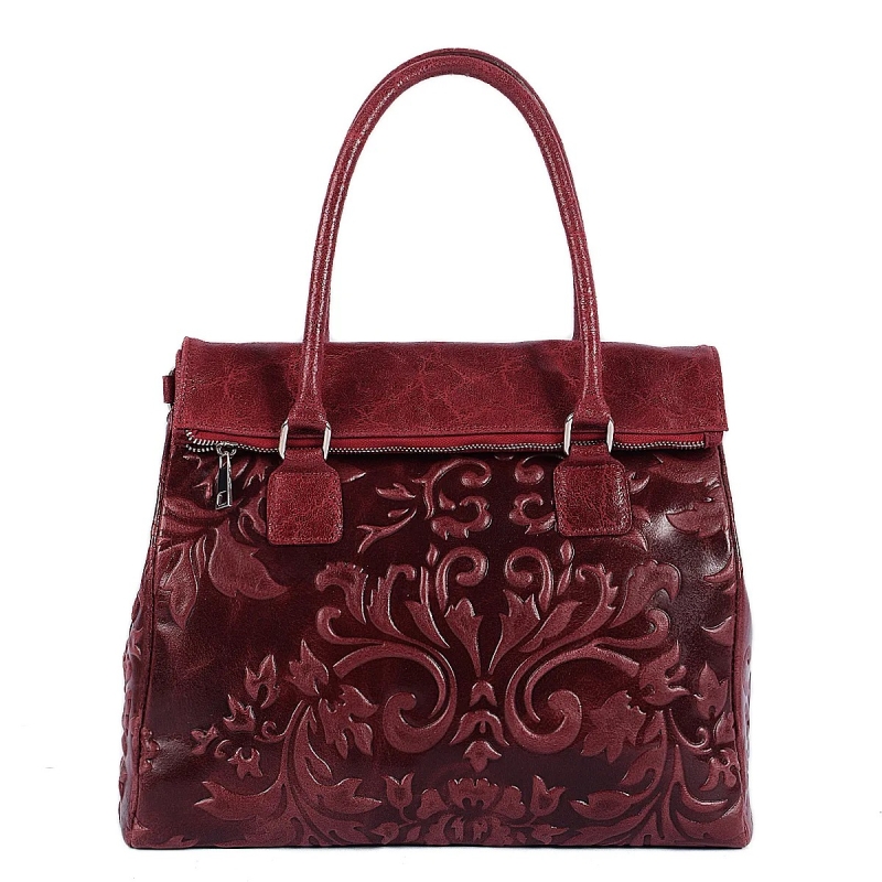 Луксозна чанта от естествена кожа в цвят бордо- Afra Burgundy 11504