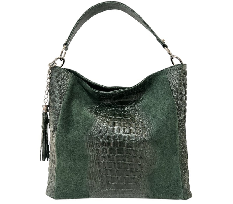 Зелена чанта от естествена кожа с животински принт- Alexa Green 11510