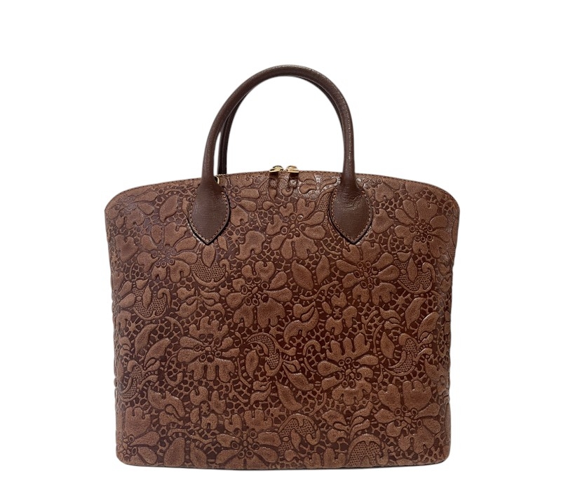 Кафява дамска чанта от релефна естествена кожа- Jamila Brown 11513
