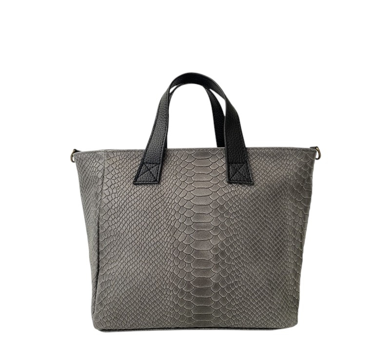 Сива дамска чанта от естествена кожа с животински принт- Cloe Grey 11515