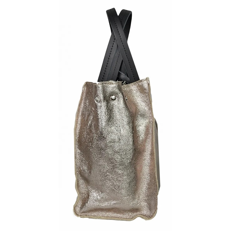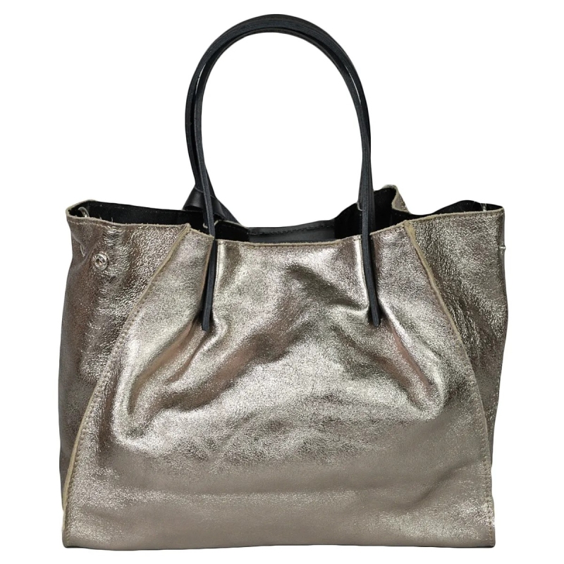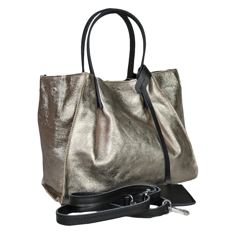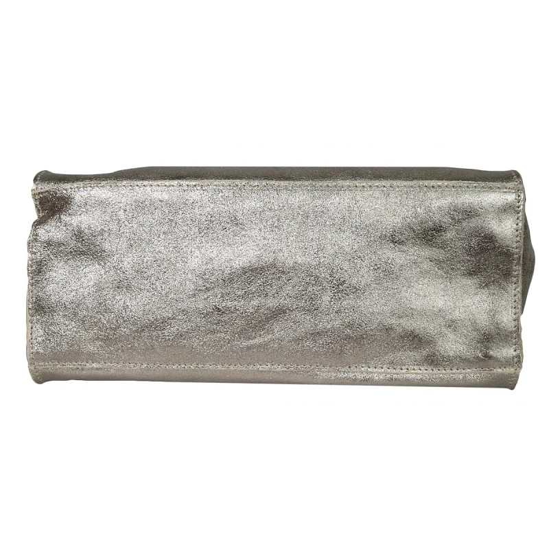 Чанта от естествена кожа в сребрист цвят- Amanda Silver 11518