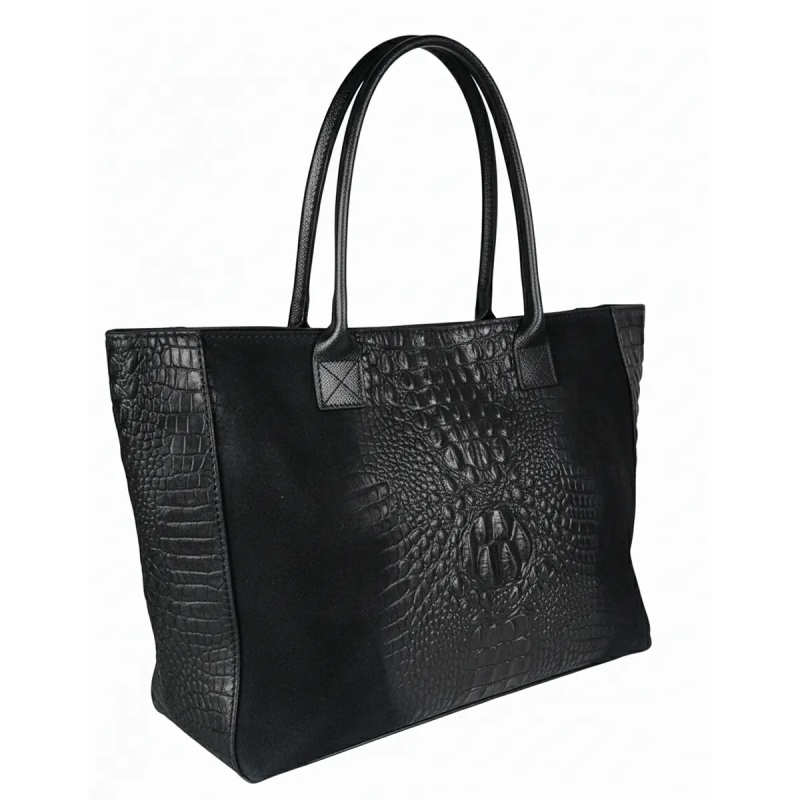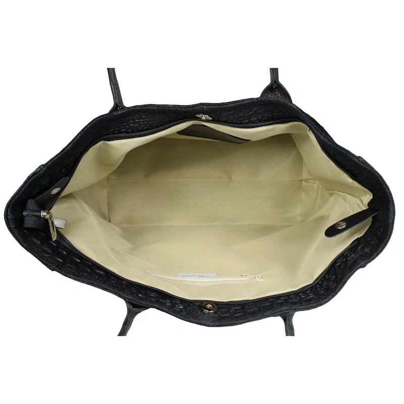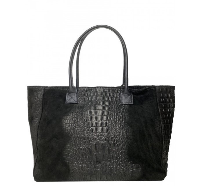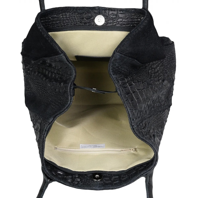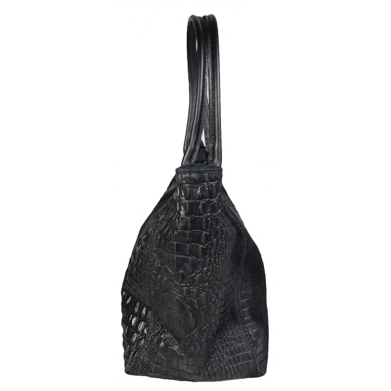 Черна чанта от естествена кожа с животински принт- Demi Red 11521
