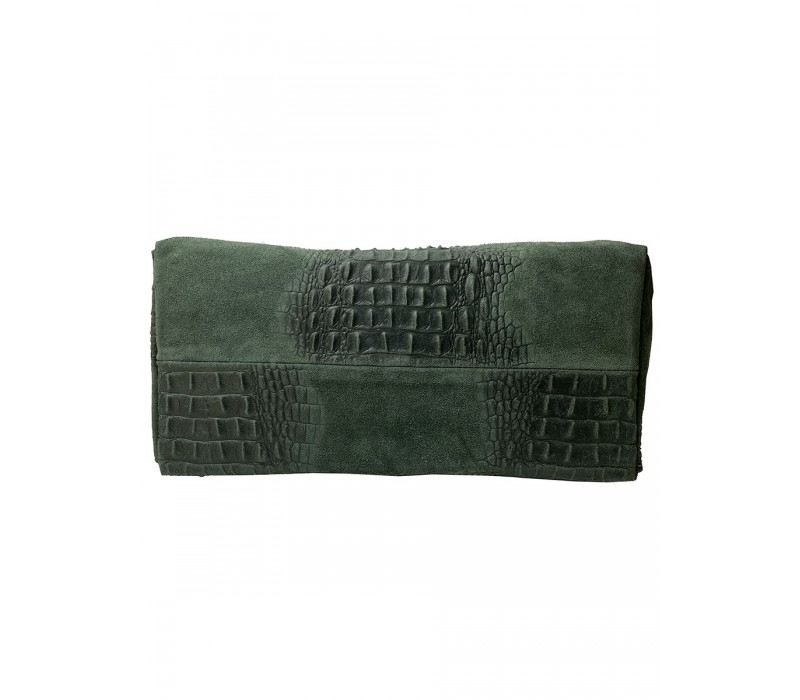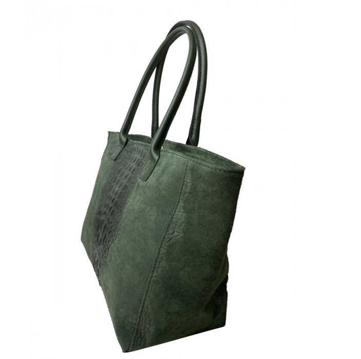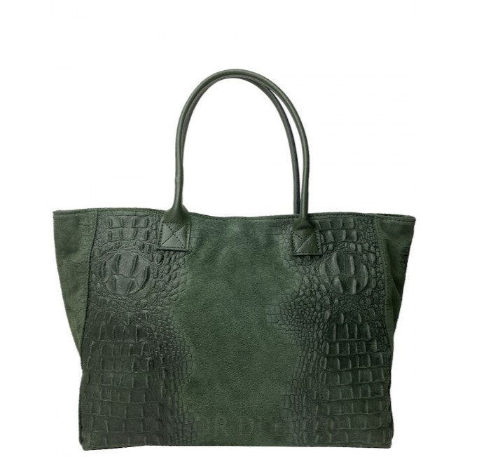 Голяма зелена чанта от естествена кожа с животински принт- Demi Green 11523