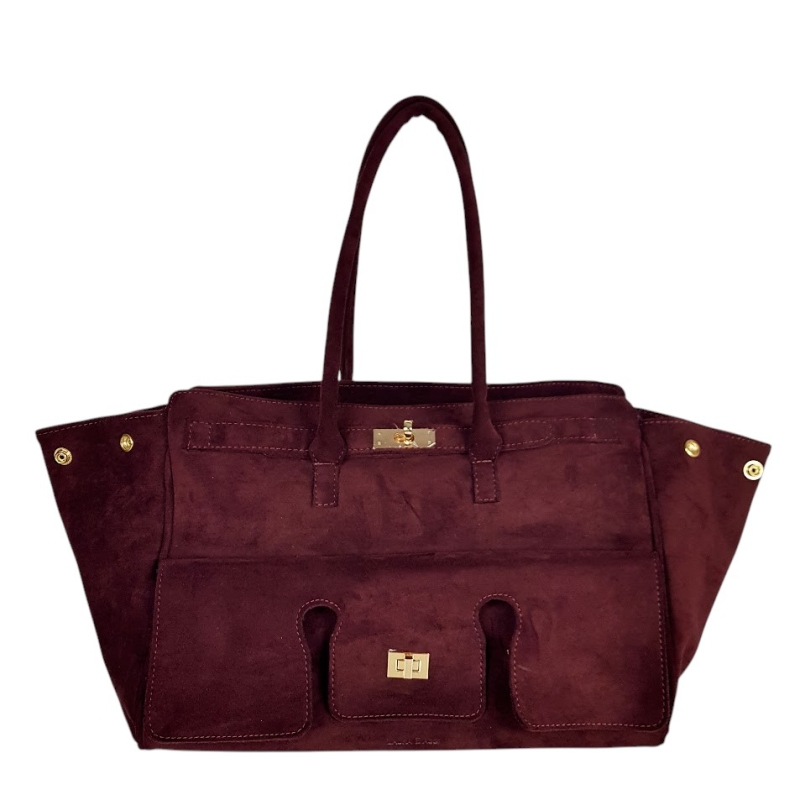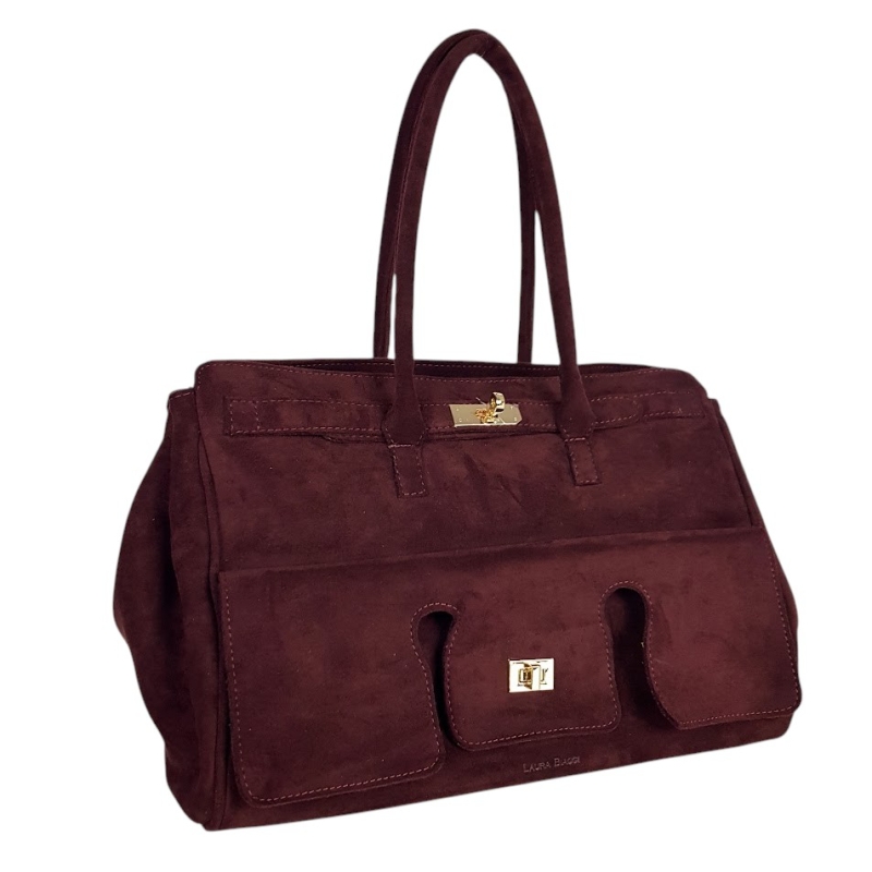 Голяма велурена чанта цвят бордо- Laura Biaggi 11537