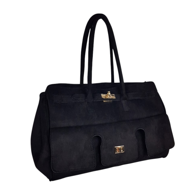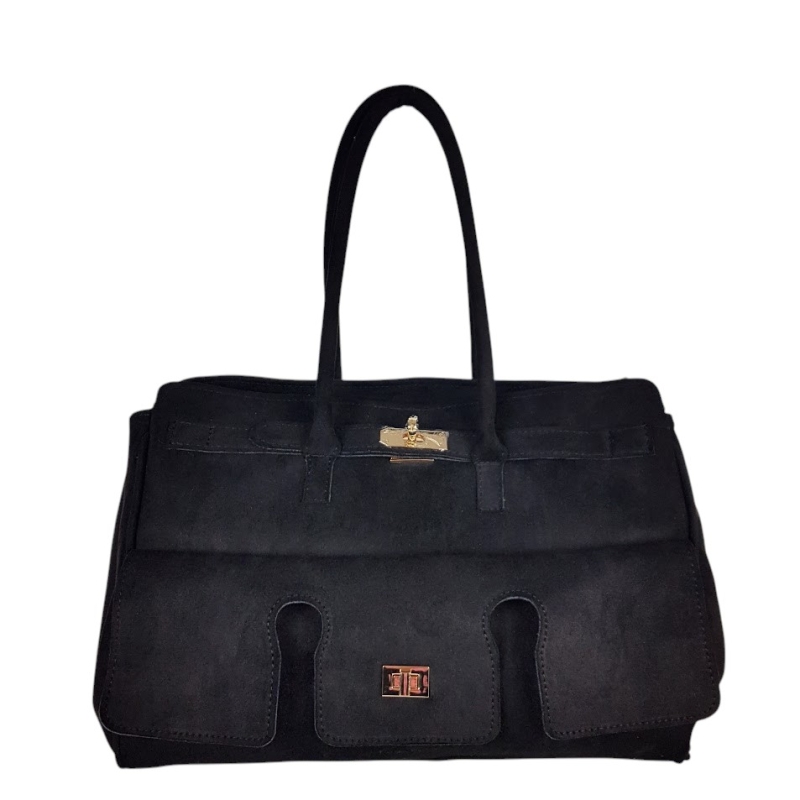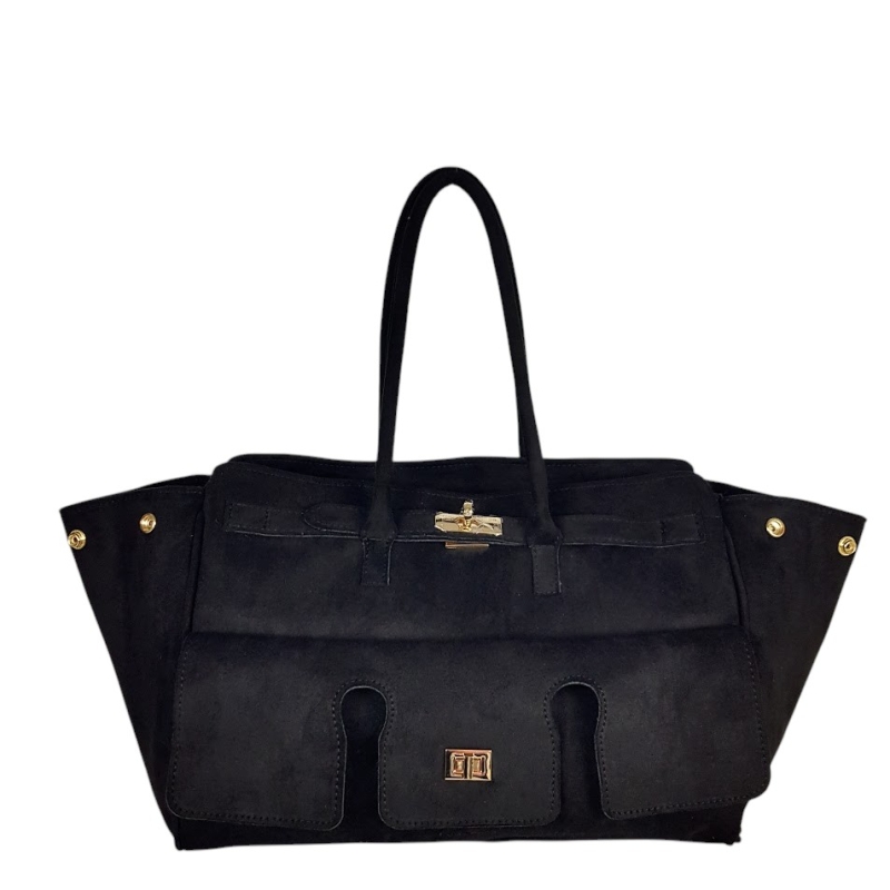 Голяма черна чанта от велур- Laura Biaggi 11539