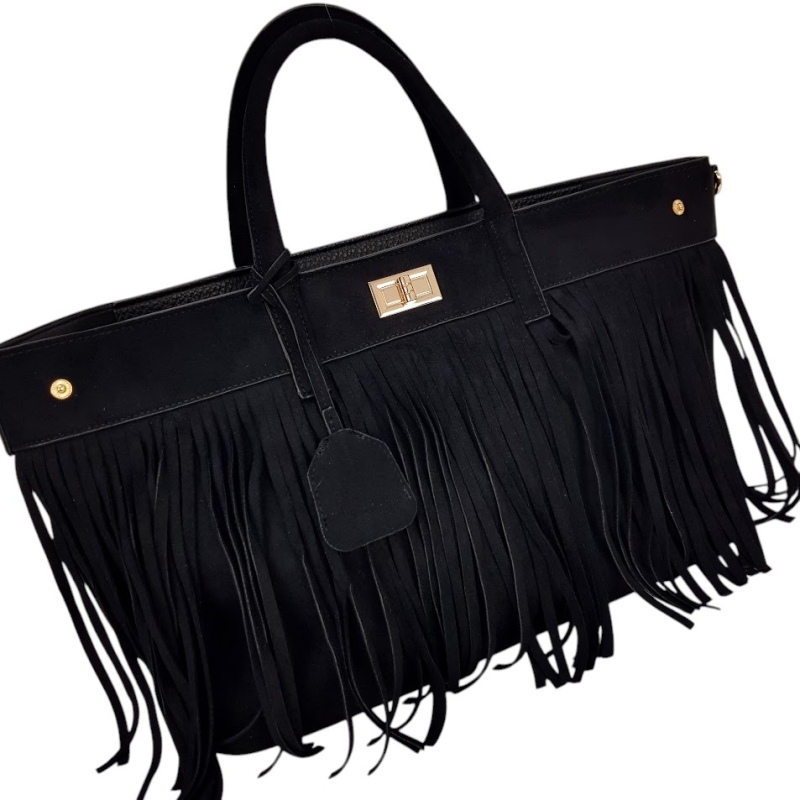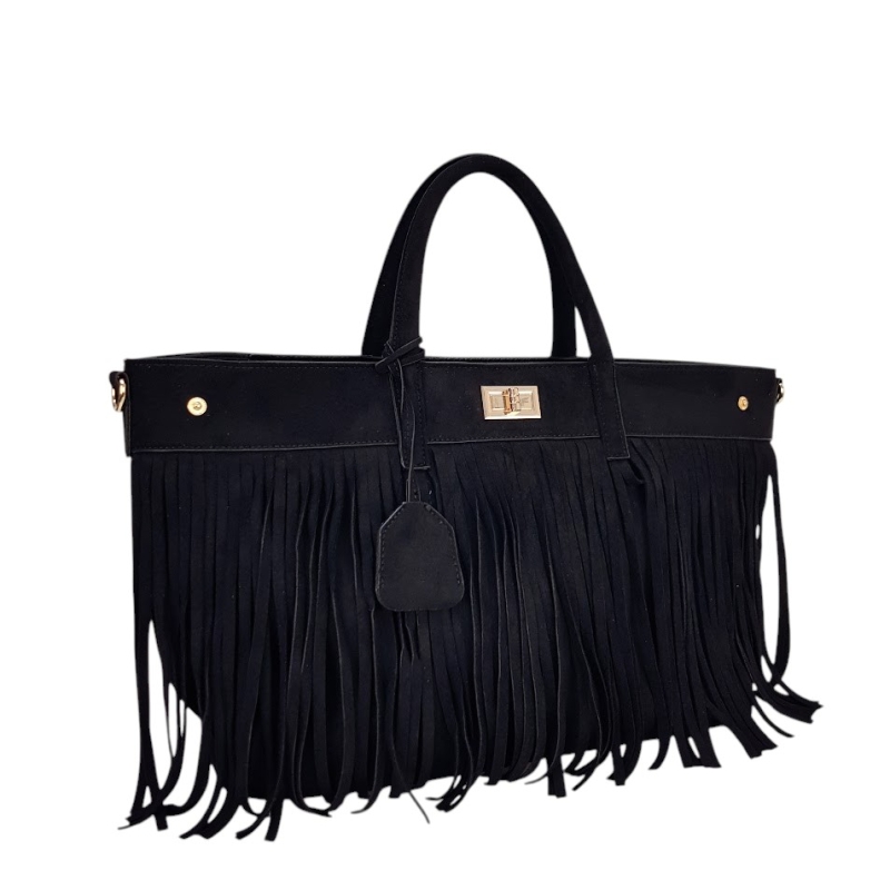 Начало НОВА КОЛЕКЦИЯ ЧАНТИ И РАНИЦИ Черна велурена чанта с ресни- Laura Biaggi 11540