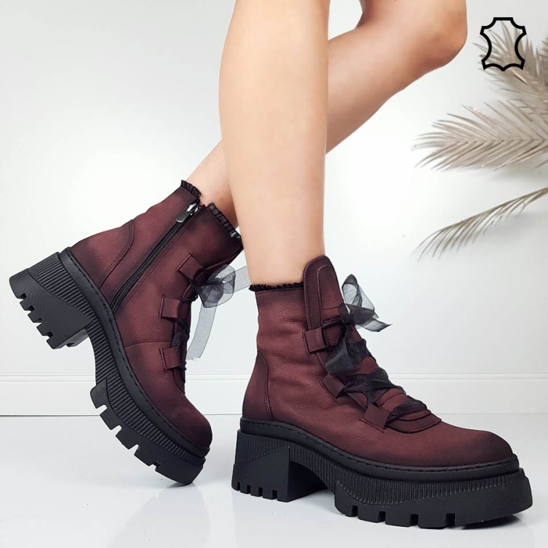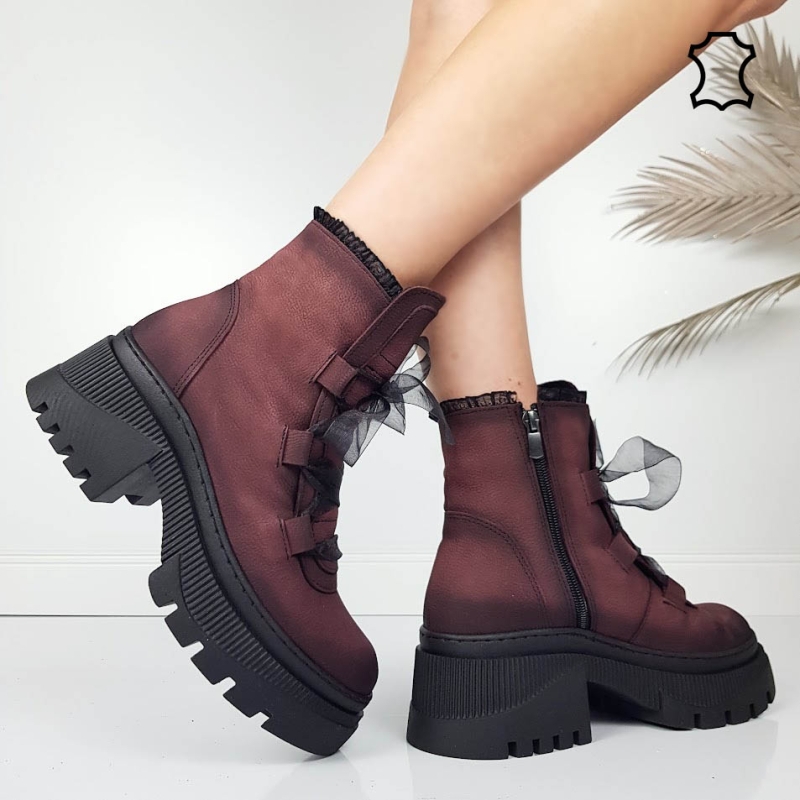 Боти от естествена кожа в цвят бордо - Tina 11573
