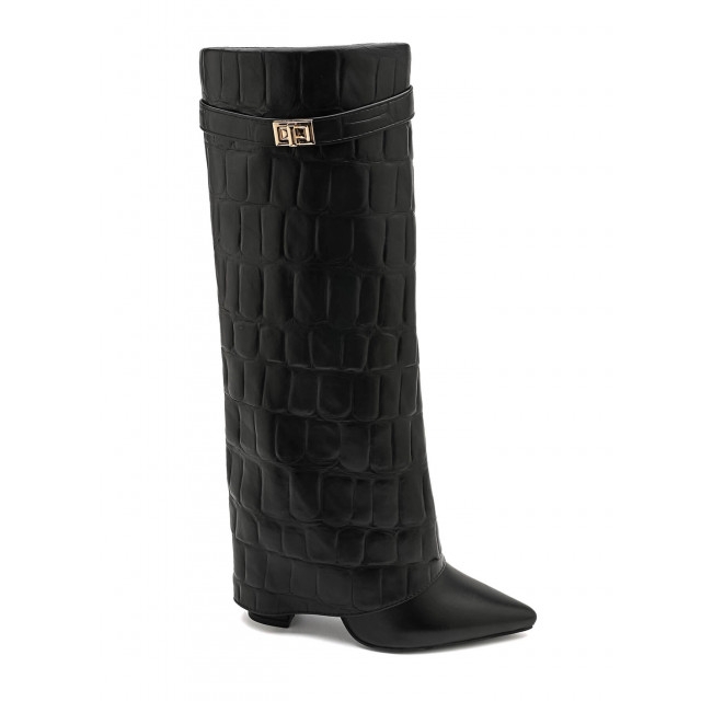 Черни ботуши на висок ток- Klaudiq Black 11577