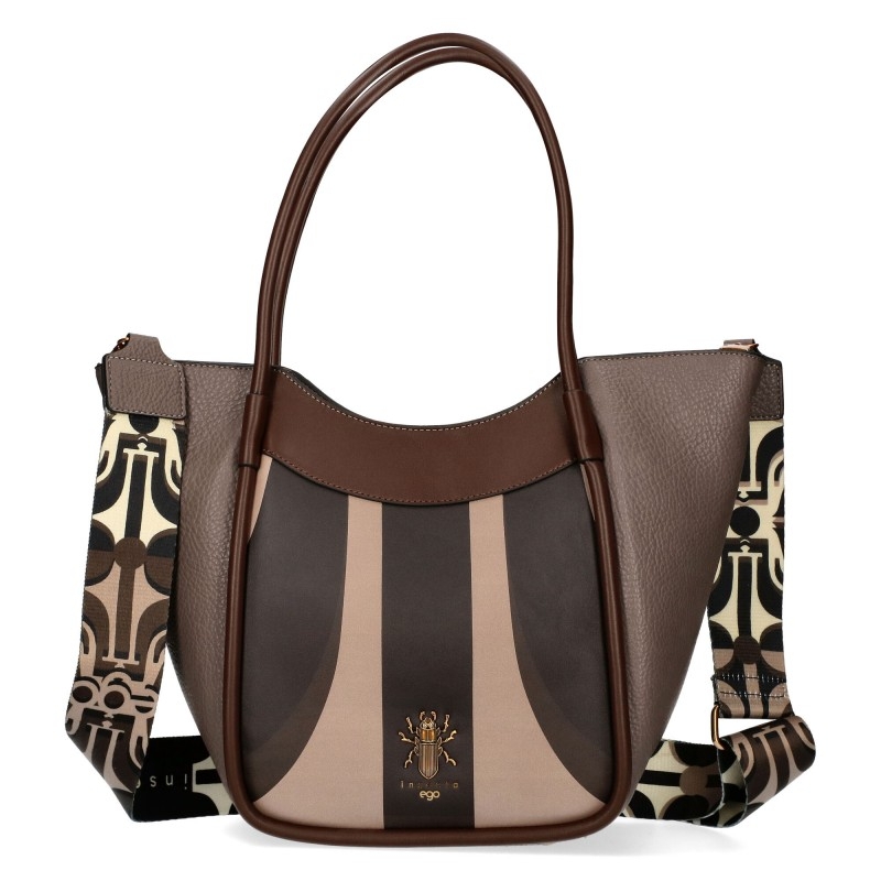 Кафява дамска чанта с дълги дръжки за рамо- EGO Inesecta 11599