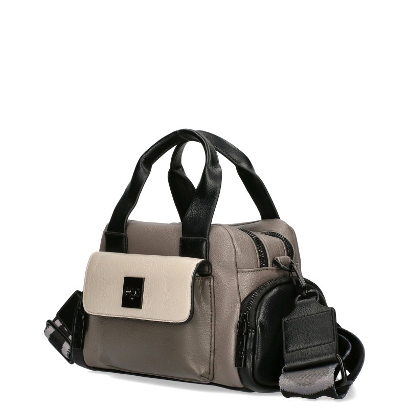 Две отделения с цип, външен джоб с капак и две дълги дръжки.