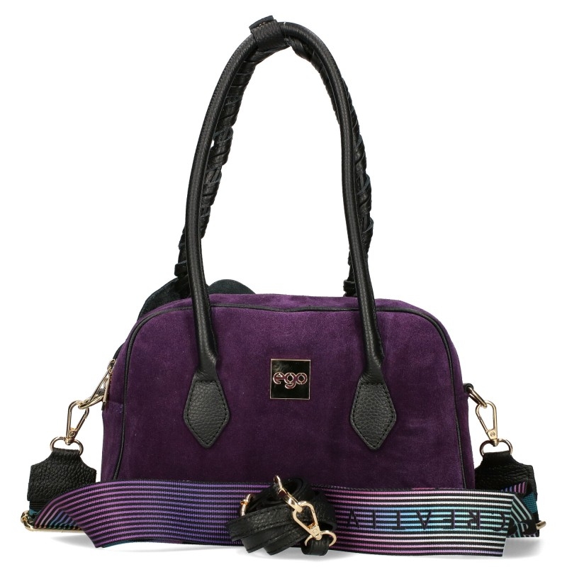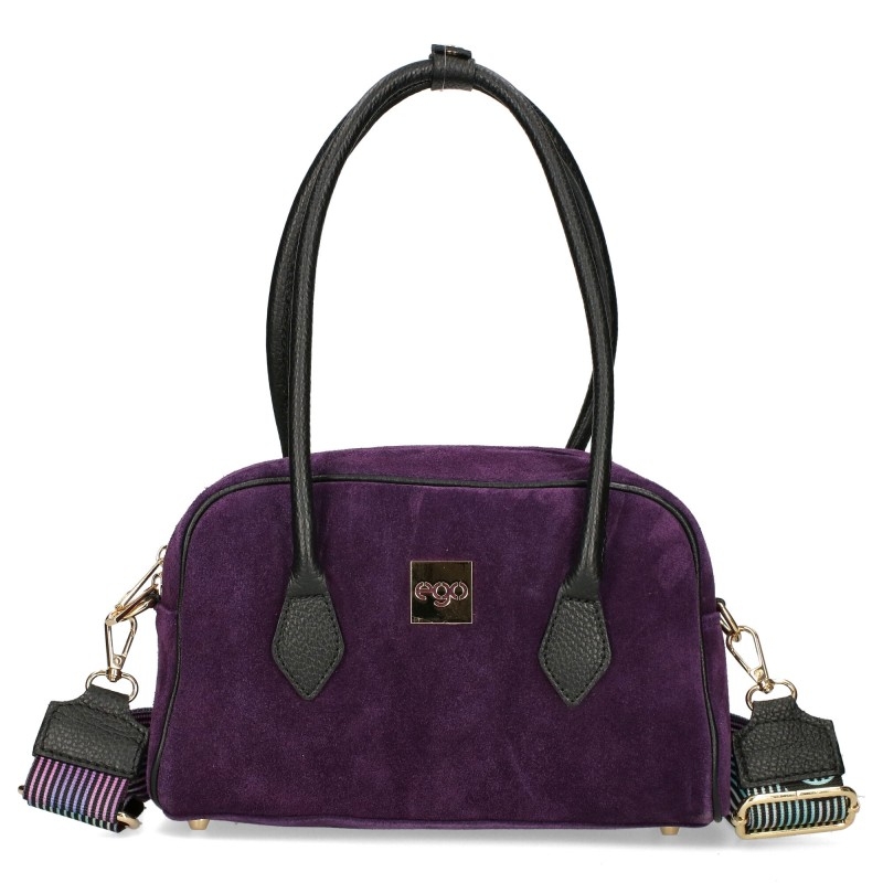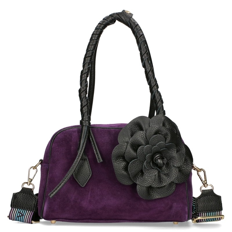 Лилава чанта от естествен велур с цвете- EGO 11611