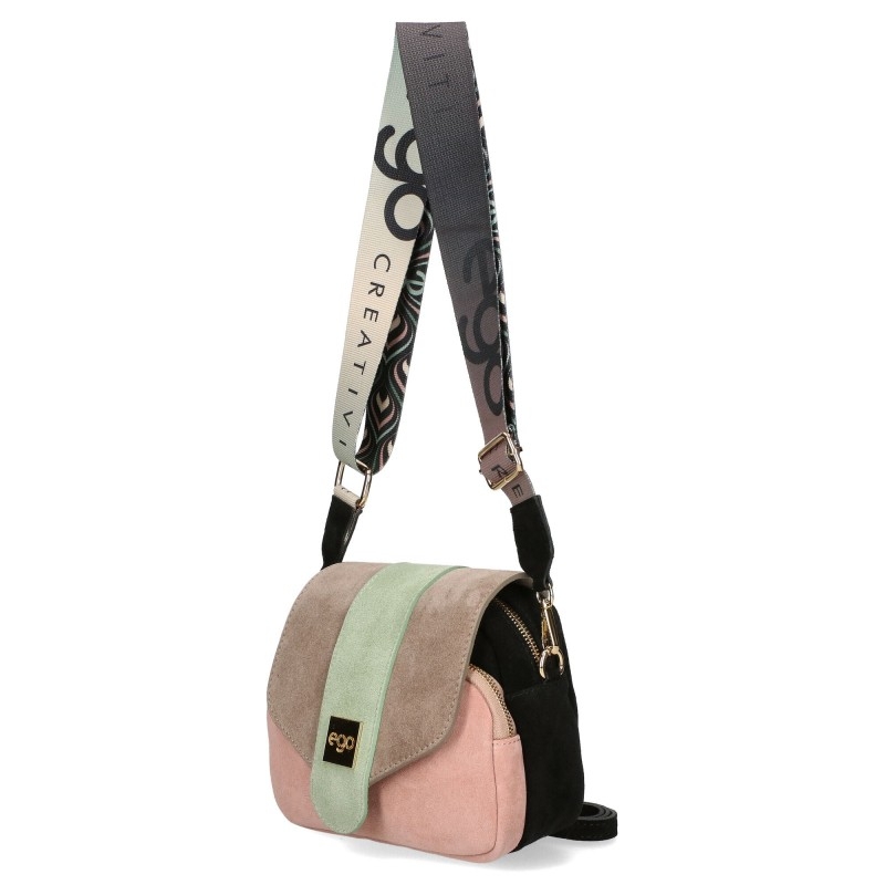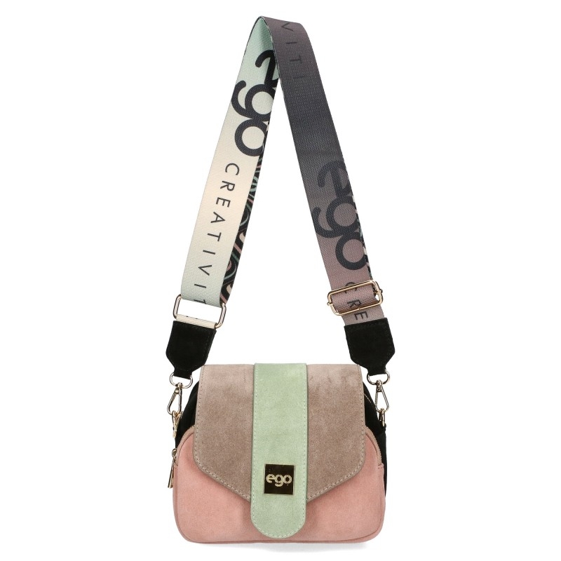 Чанта от естествен велур в бежов и розов цвят- EGO 11612