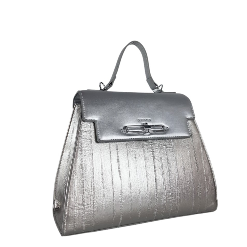 Сребриста дамска чанта с дълга дръжка- Duki&Daso 11628