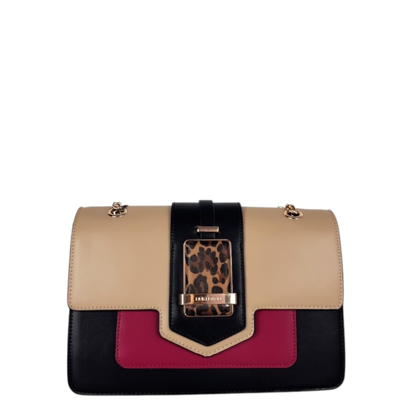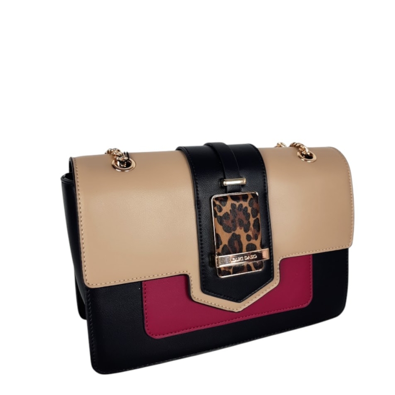 Дамска чанта с леопардов акцент и дълга дръжка- Duki&Daso 11632