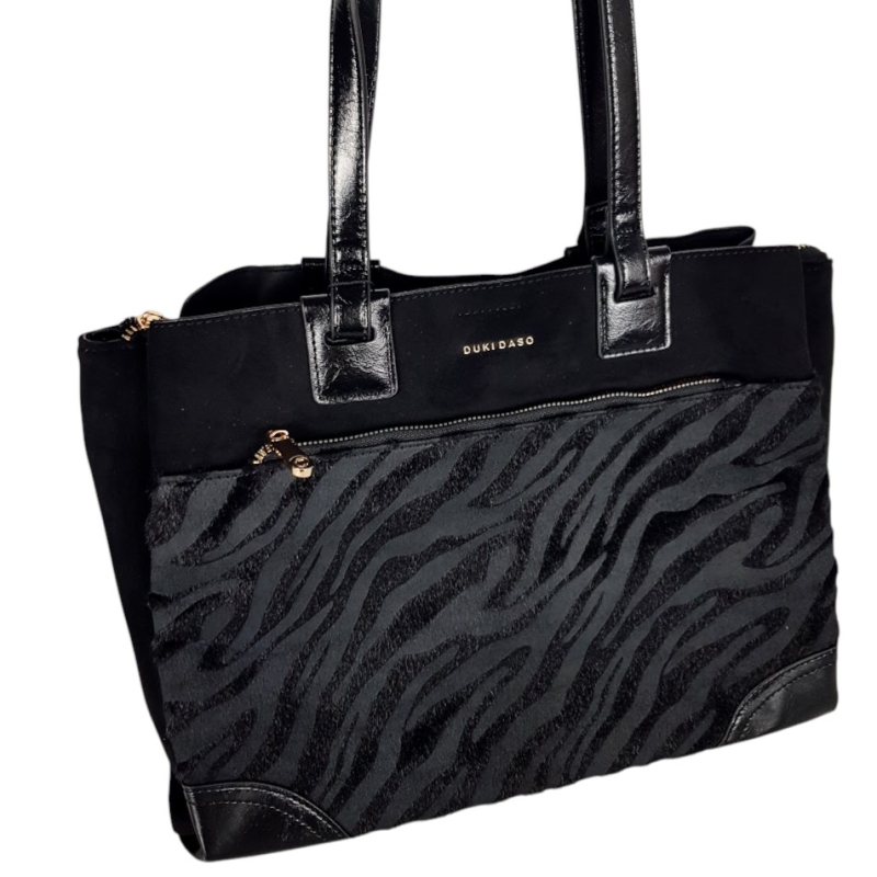 Черна велурена чанта с дълги дръжки- Duki&Daso 11642