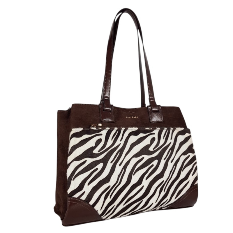 Кафява велурена чанта с дълги дръжки за рамо- Duki&Daso 11645