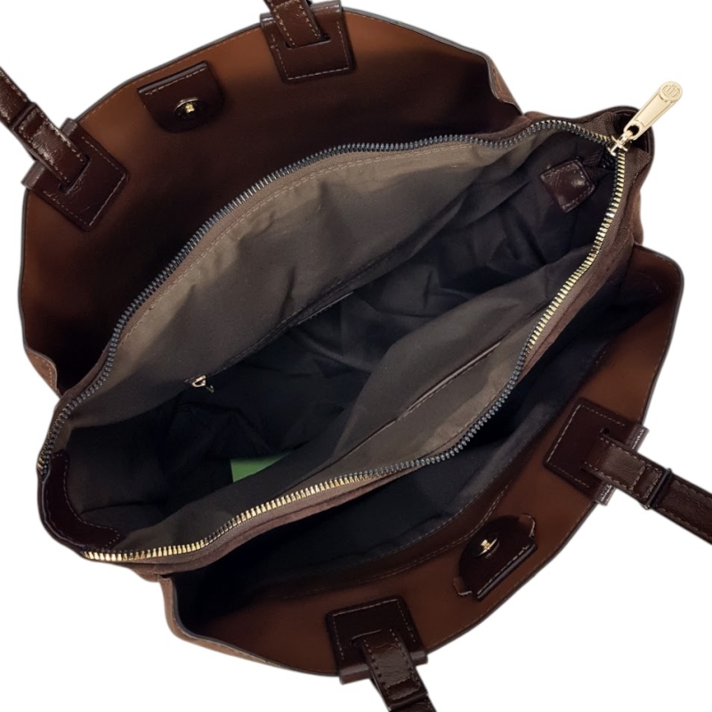 Начало НОВА КОЛЕКЦИЯ ЧАНТИ И РАНИЦИ Кафява велурена чанта с дълги дръжки за рамо- Duki&Daso 11645