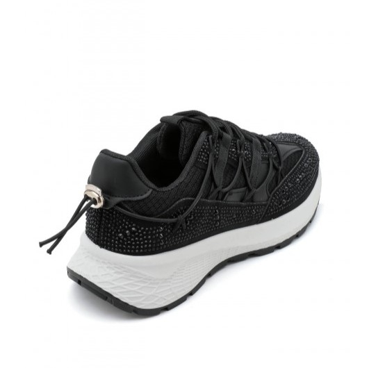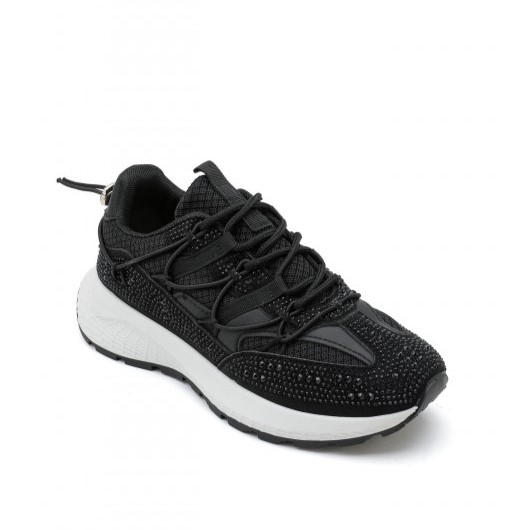 Черни дамски маратонки с камъни- Sisi Black 11679