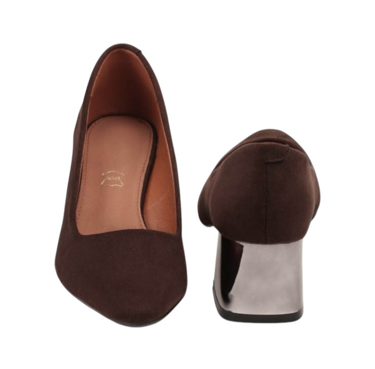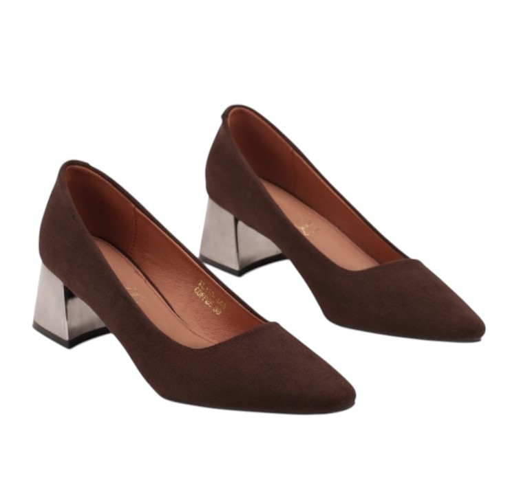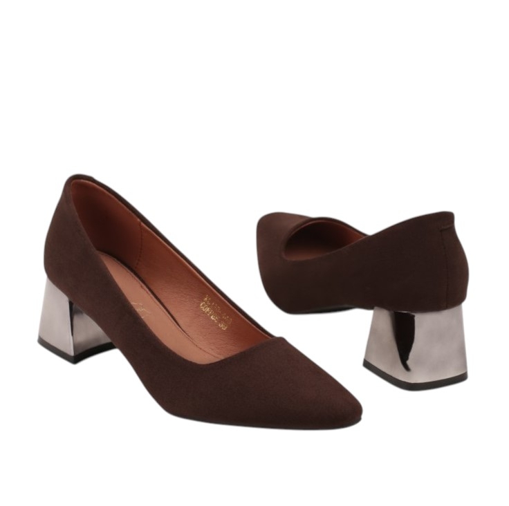 Остри обувки на удобен широк ток цвят кафе- Amanda Coffee 11704